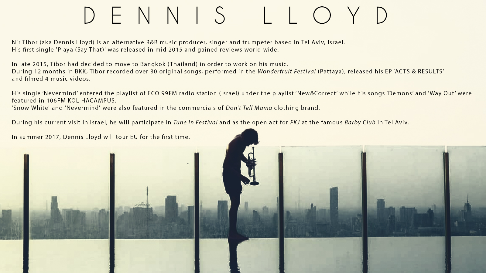 | Jan / 2017 | • | Dennis Lloyd LIVE | Barshevski, RSLTZ | |||