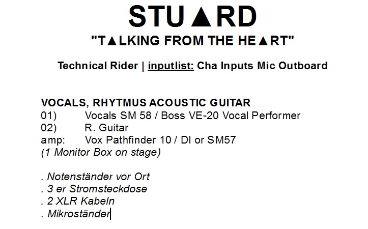 die STUARD ab nun live performt. Er unterhält in emotionaler Singer/Songwritermanier, verzaubert im intimen Dialog sein Publikum.